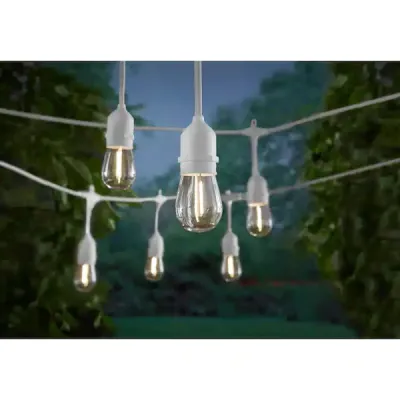 48FT Outdoor LED String Lights Plug-In - 24 Shatter Resistant and Waterproof Bulbs - Commercial Grade - UL Listed Heavy Duty Wire